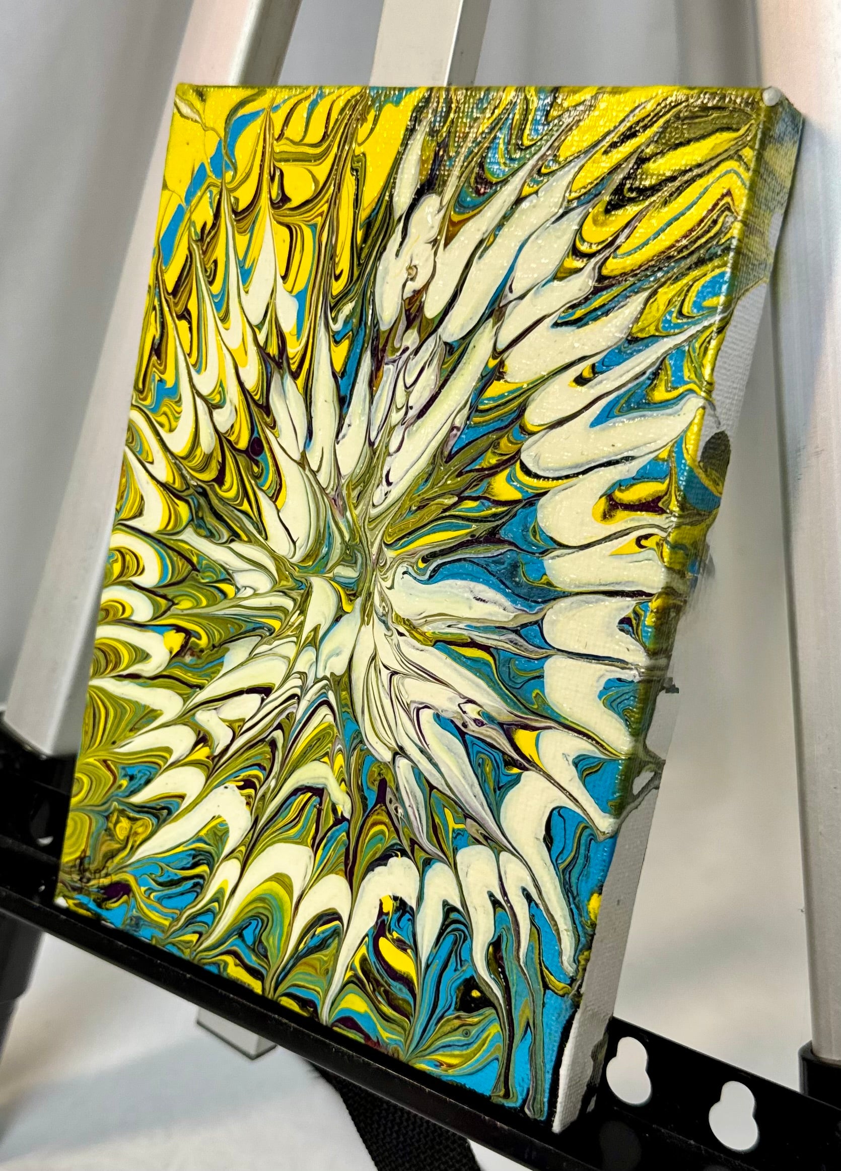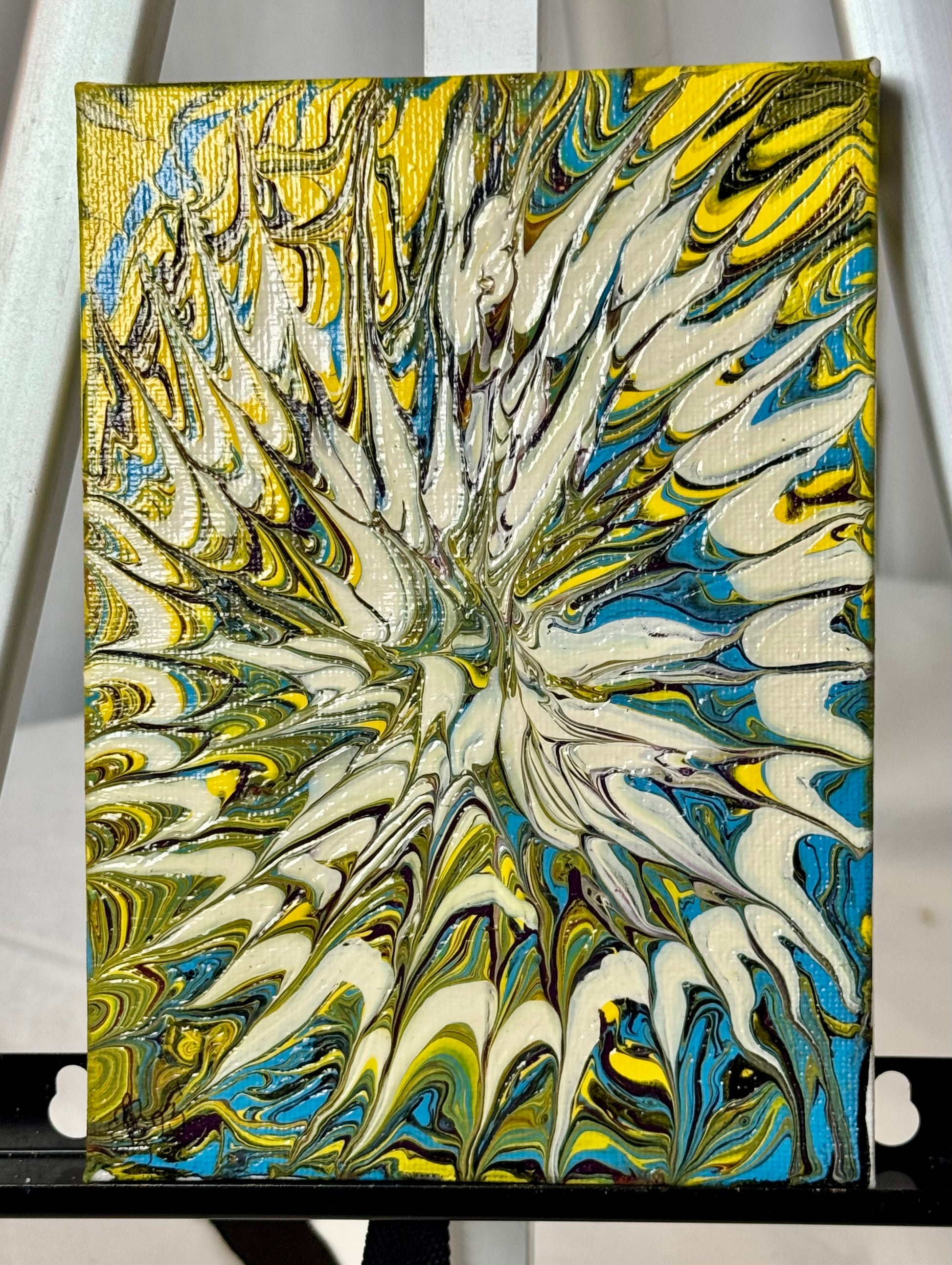 Unleash your creative spirit with Comic Disturbia! This 5X7" paint pour painting will elevate your art to the next level. Perfect for adding texture and depth to any space. Let your imagination run wild and transform any room into a vibrant and unique masterpiece!