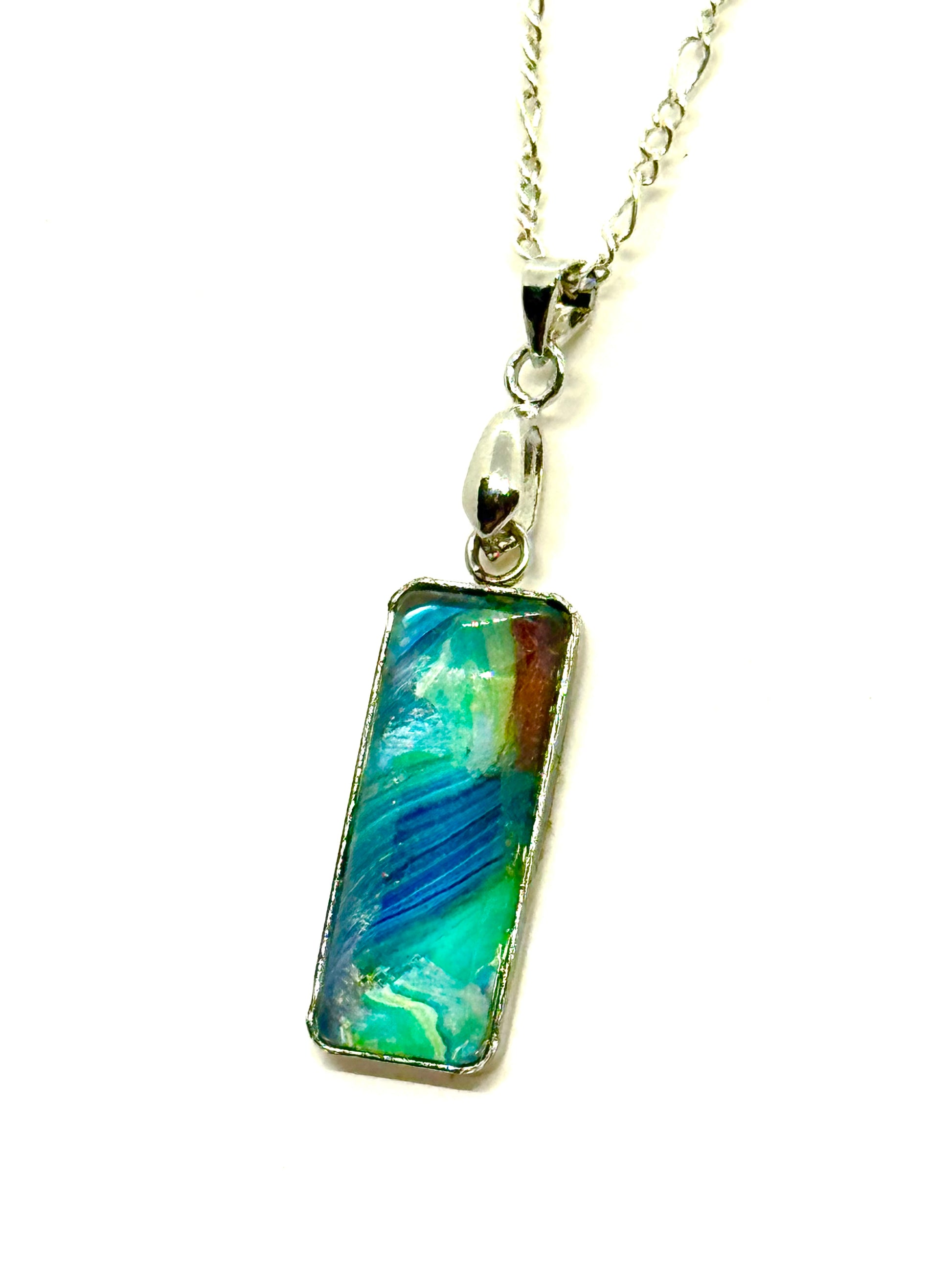 Experience the unique beauty of our Paint Poured Necklace! Made with a special technique, each necklace is one-of-a-kind. Stand out from the crowd and add color to your wardrobe with this vibrant and eye-catching accessory. Elevate your style and make a statement with our Paint Poured Necklace.