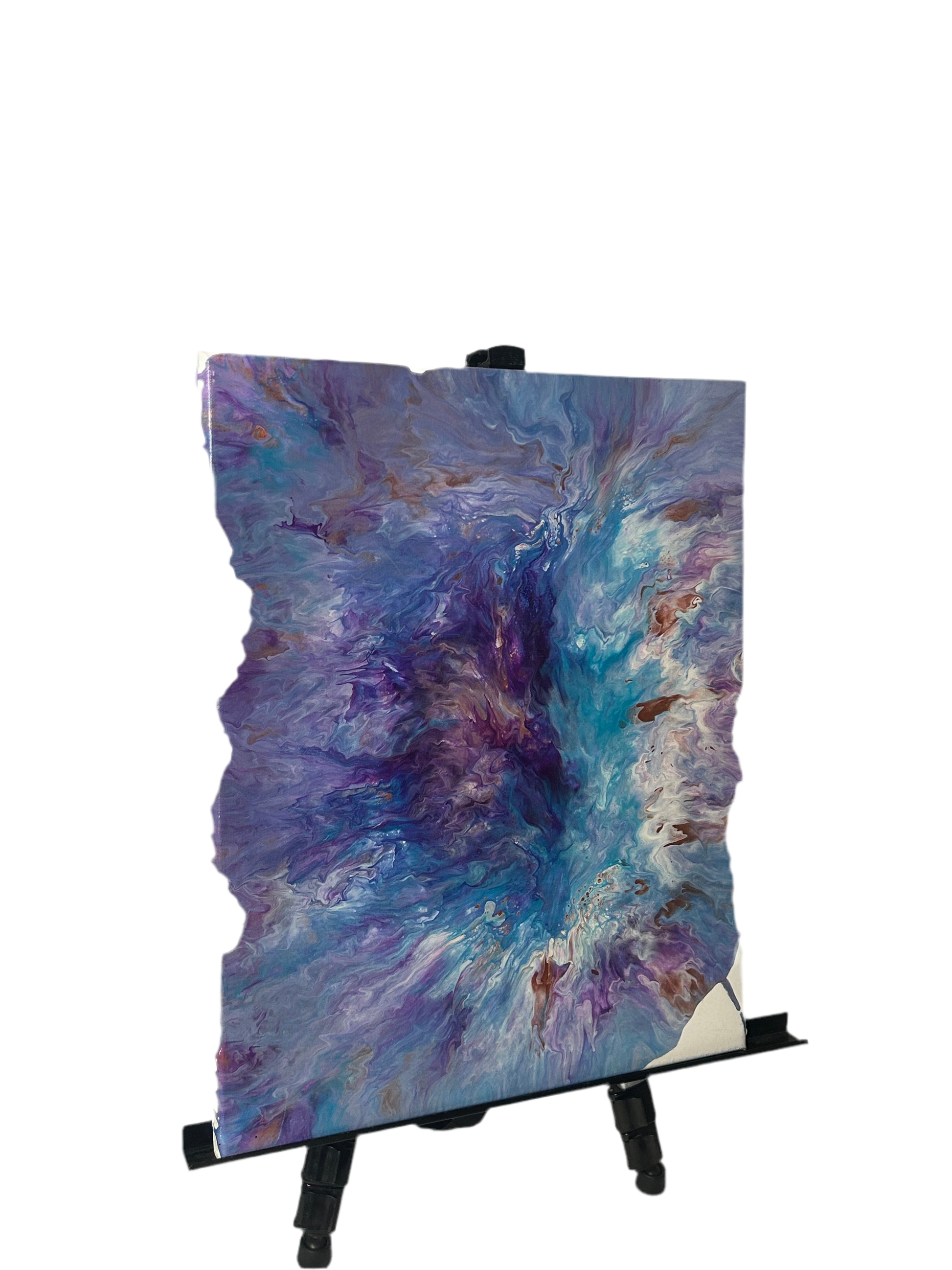 Transform any space with the stunning Portal acrylic painting. This 16x20" masterpiece boasts a mesmerizing mixture of purple, blue, gold, and brown, evoking a sense of wonder and enchantment. Add a touch of elegance and inspiration to your home or office with this unique piece of art.