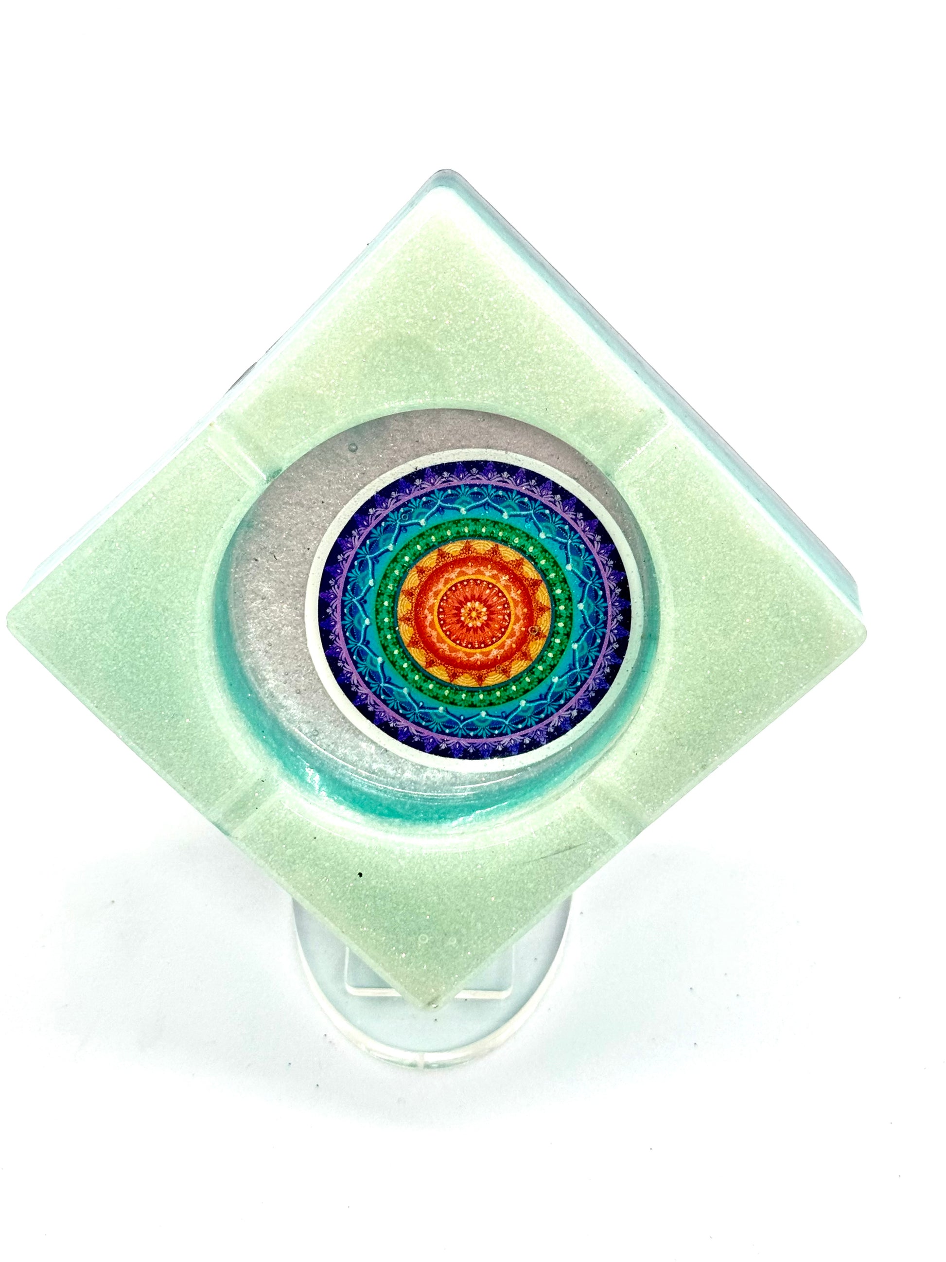 Elevate your smoking experience with our Square Ashtray! This beautifully crafted blue and white epoxy resin ashtray features a striking Mandela center, elevating the aesthetic of any smoking area. Add a touch of style and functionality to your space with this unique ashtray.