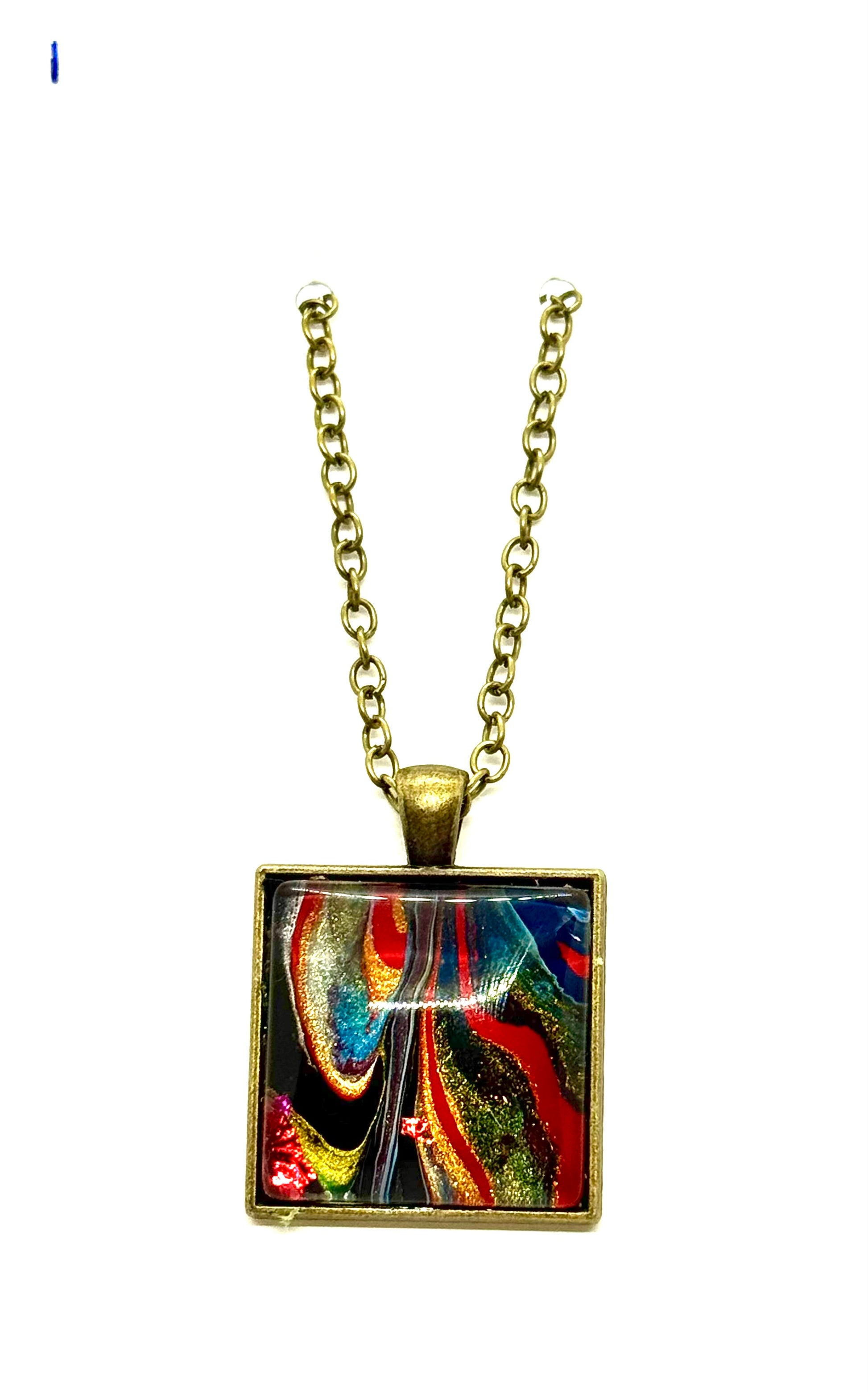 Square Paint Pour Necklace #1