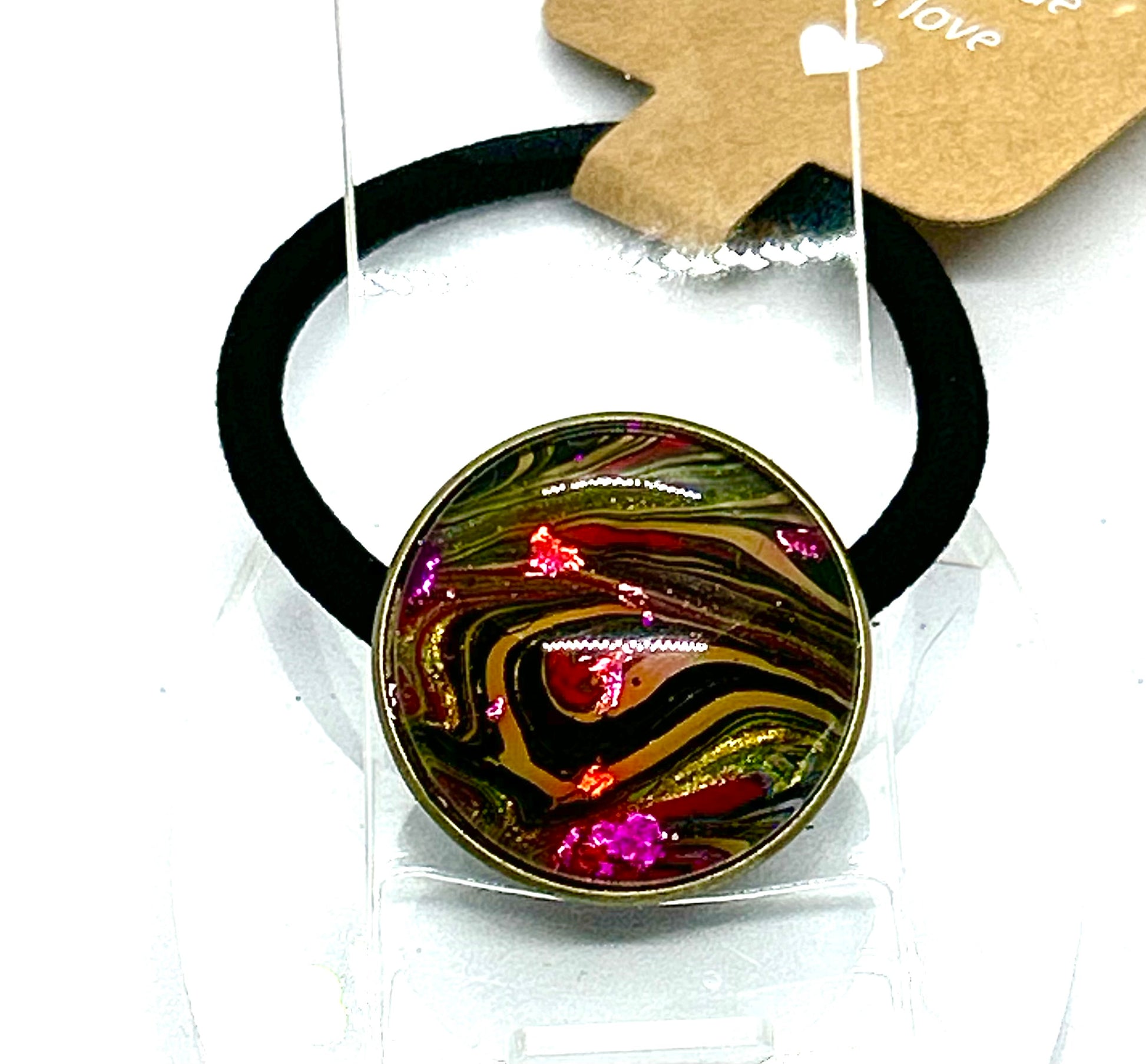 Elevate your hair game with our Glass Dome Paint Pour Hair Tie! Featuring a unique design and impeccable craftsmanship, it adds an effortless touch of style to any outfit. Say goodbye to boring hair accessories and hello to a vibrant and versatile hair tie that will make you stand out from the crowd.