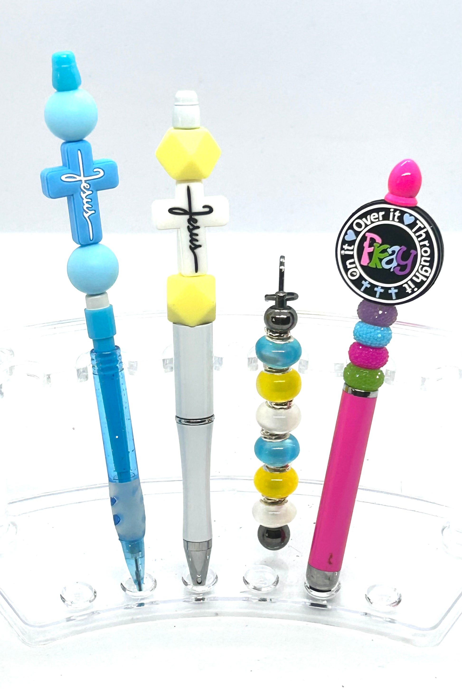 This 4 piece beaded set includes a pen, pencil, stylus and bookmark. Perfect for those who value functionality and style. Stay organized and inspired with these elegant, beaded writing tools.