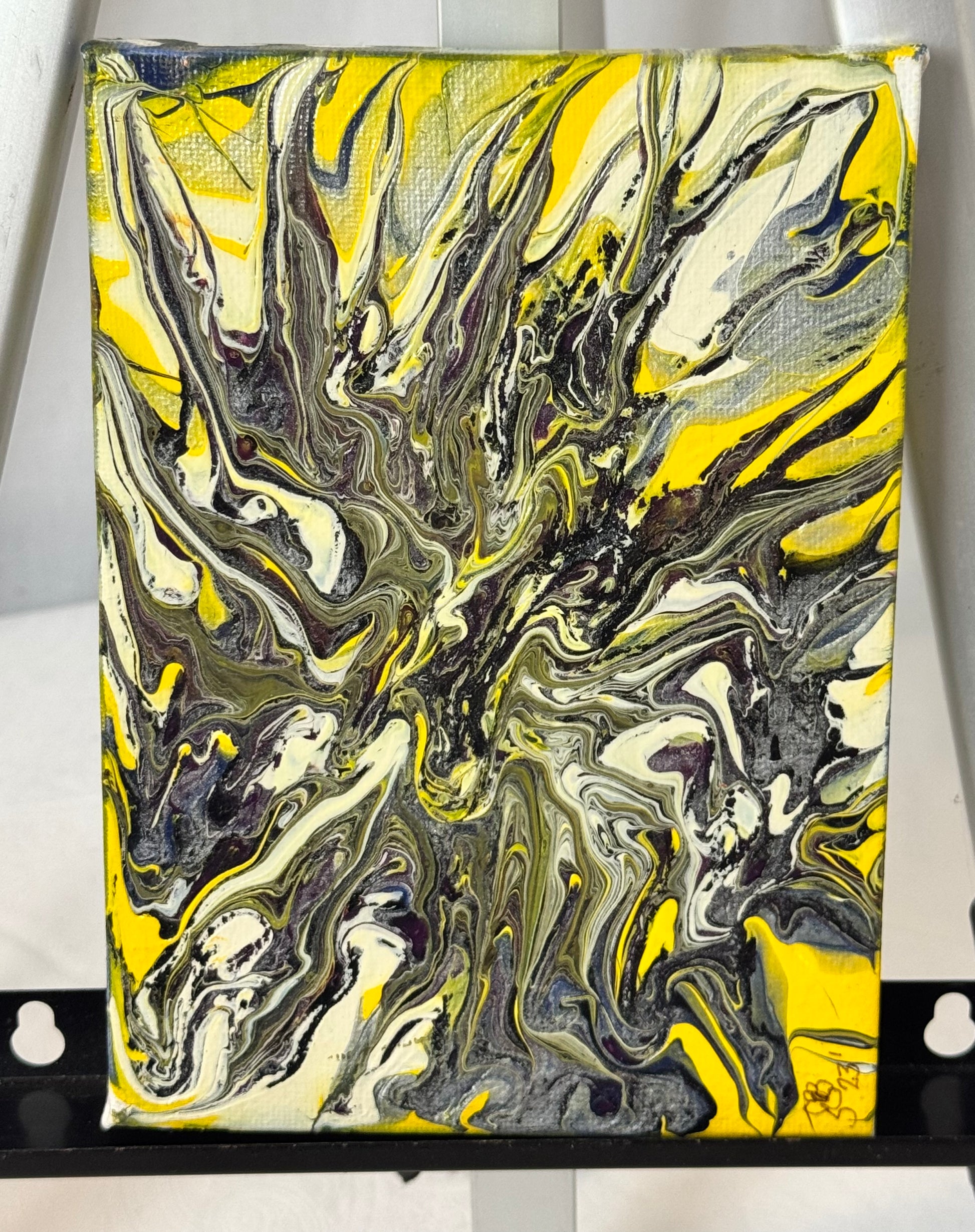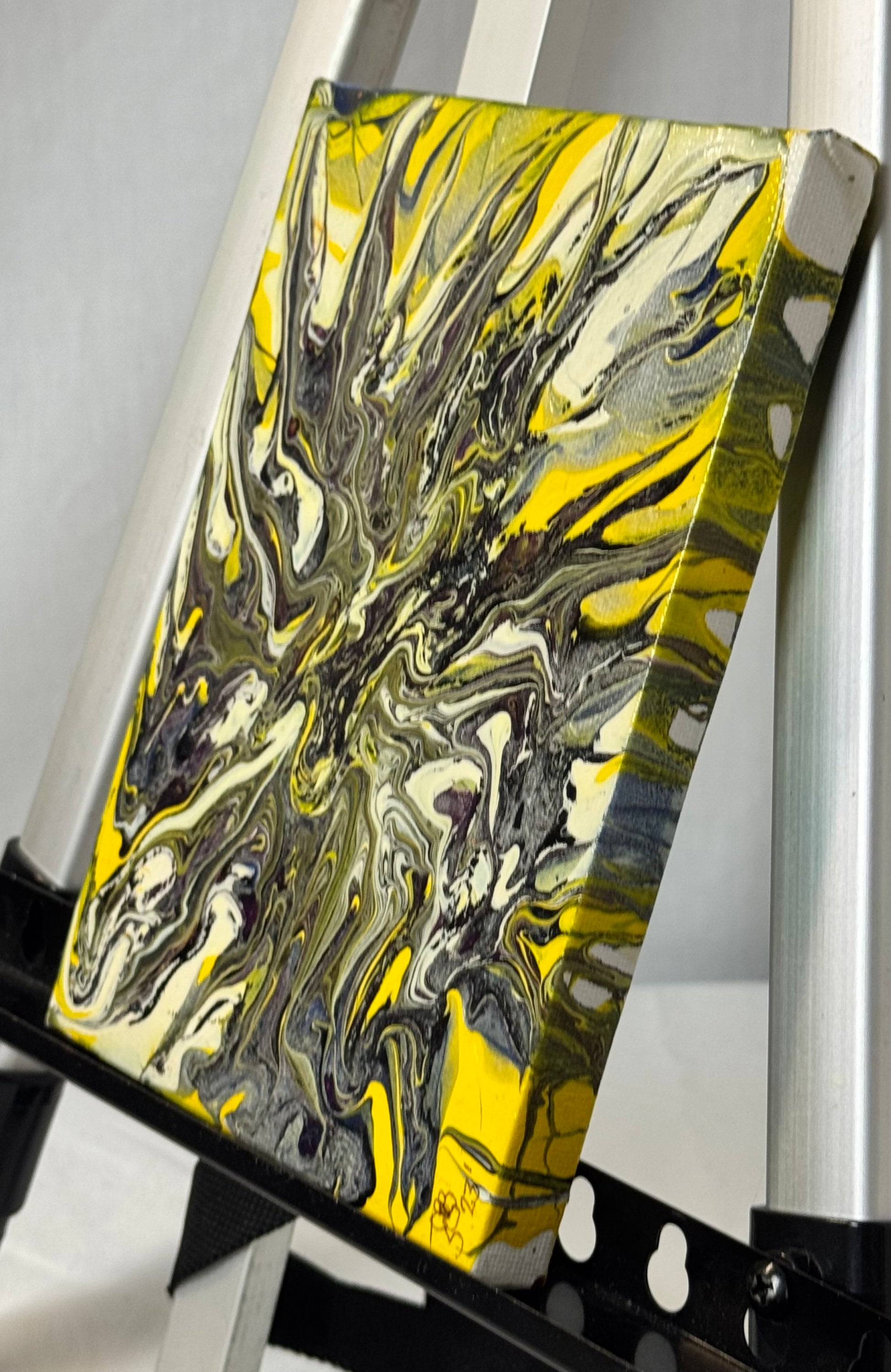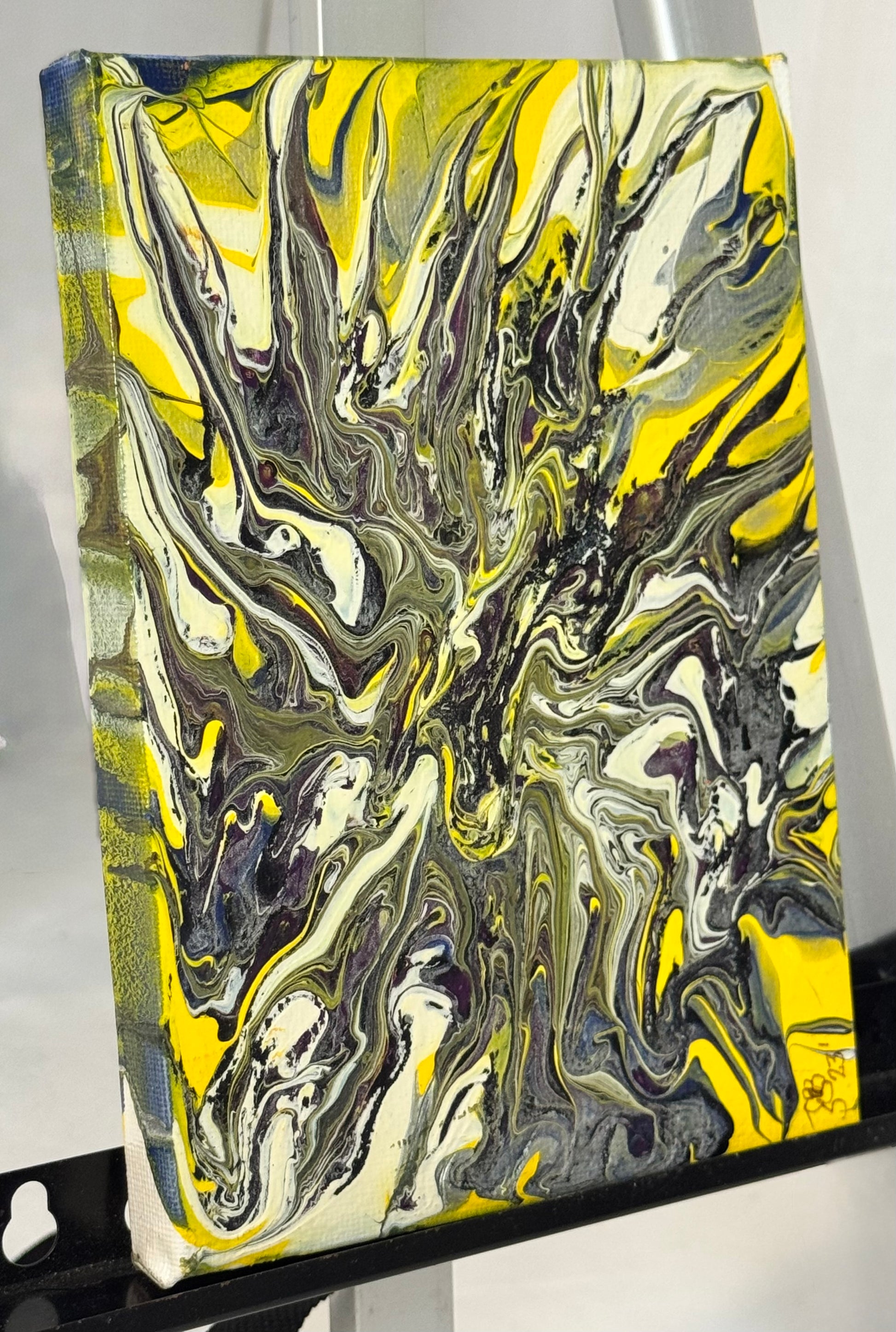 Unleash your creativity with Dragon, a stunning 5x7" canvas paint pour painting. The vibrant yellow and silver hues, along with the use of high-quality white acrylic paint, make this piece a perfect addition to any space. Get ready to be inspired and captivated by the beauty of Dragon.