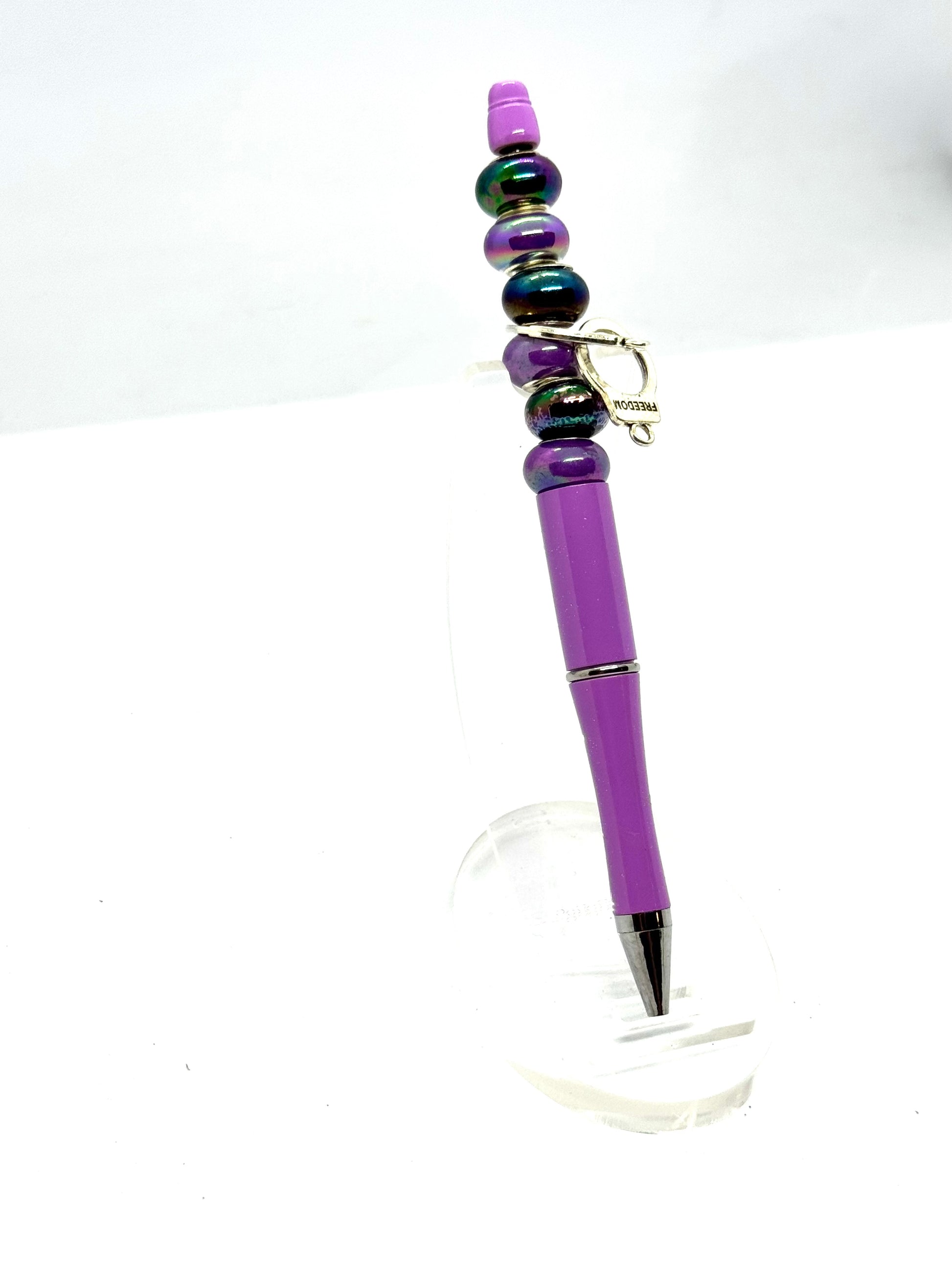 Unleash your creativity with the Freedom Cuffs Pen! This beautiful purple pen features a unique design with acrylic beads and a pair of handcuffs charm. It's perfect for those who appreciate a touch of edginess in their stationary. Express yourself with style and make a statement with every stroke!