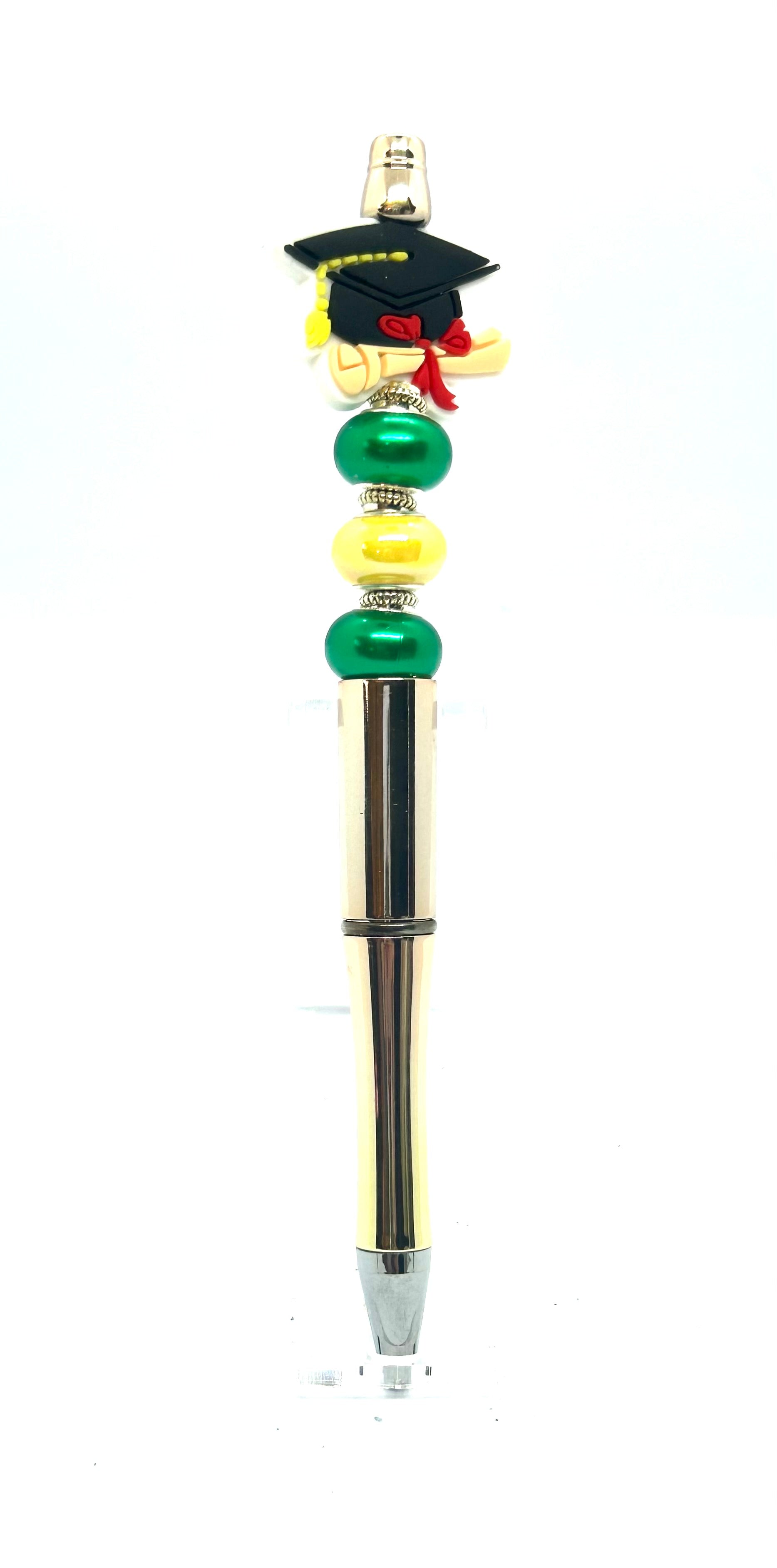 Celebrate your achievement with our Graduation Beaded Pen! This unique pen features intricate beading and is perfect for commemorating your special day. Add a touch of elegance to your writing and remember your graduation with every stroke. Makes a great gift for graduates.