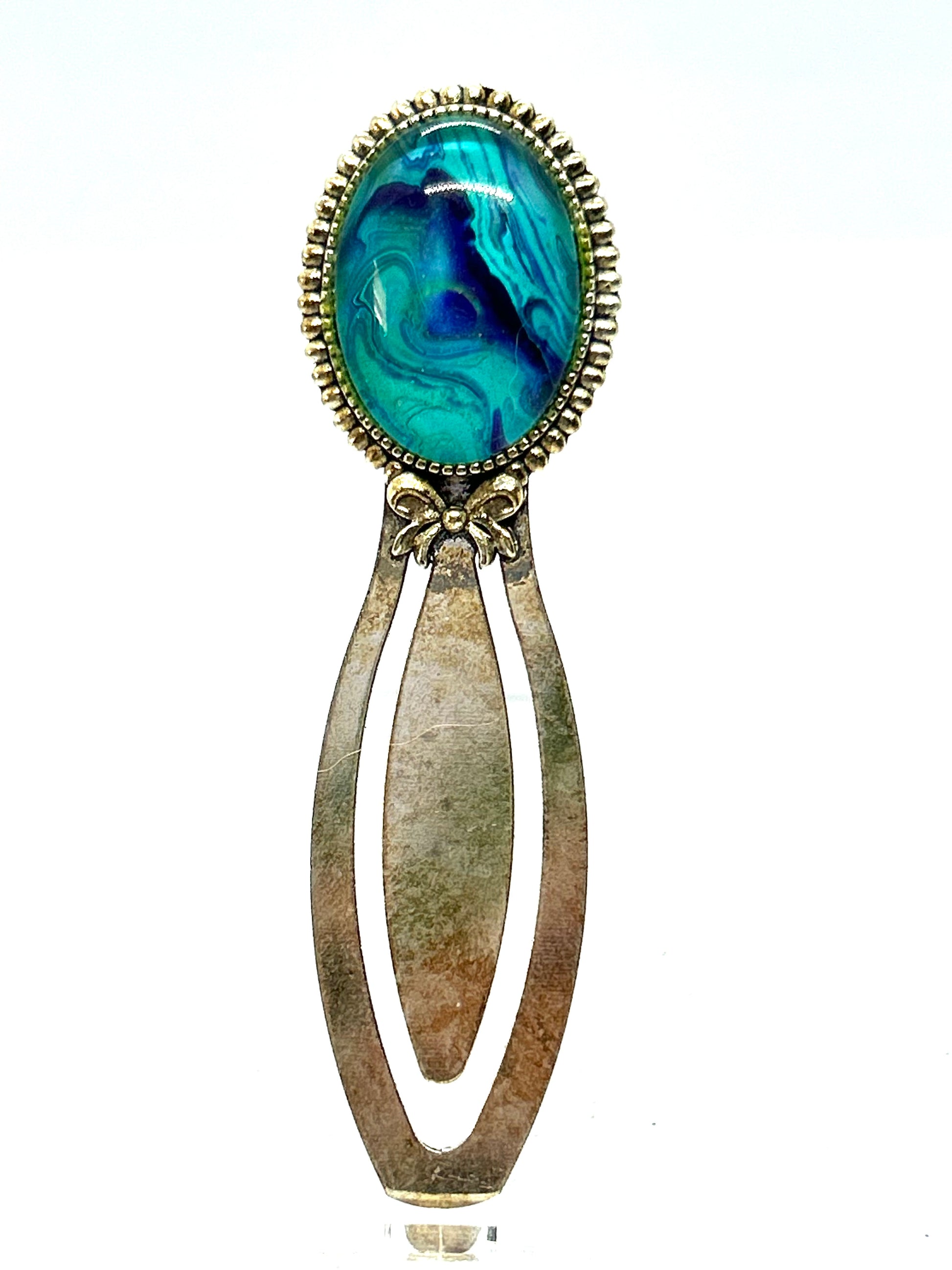 Introducing the Metal Clip Bookmark, the perfect combination of functionality and beauty! Crafted with a metal clip and glass dome, it features a unique paint poured design that will bring joy to any avid reader. Never lose your page again and add a touch of style to your books.