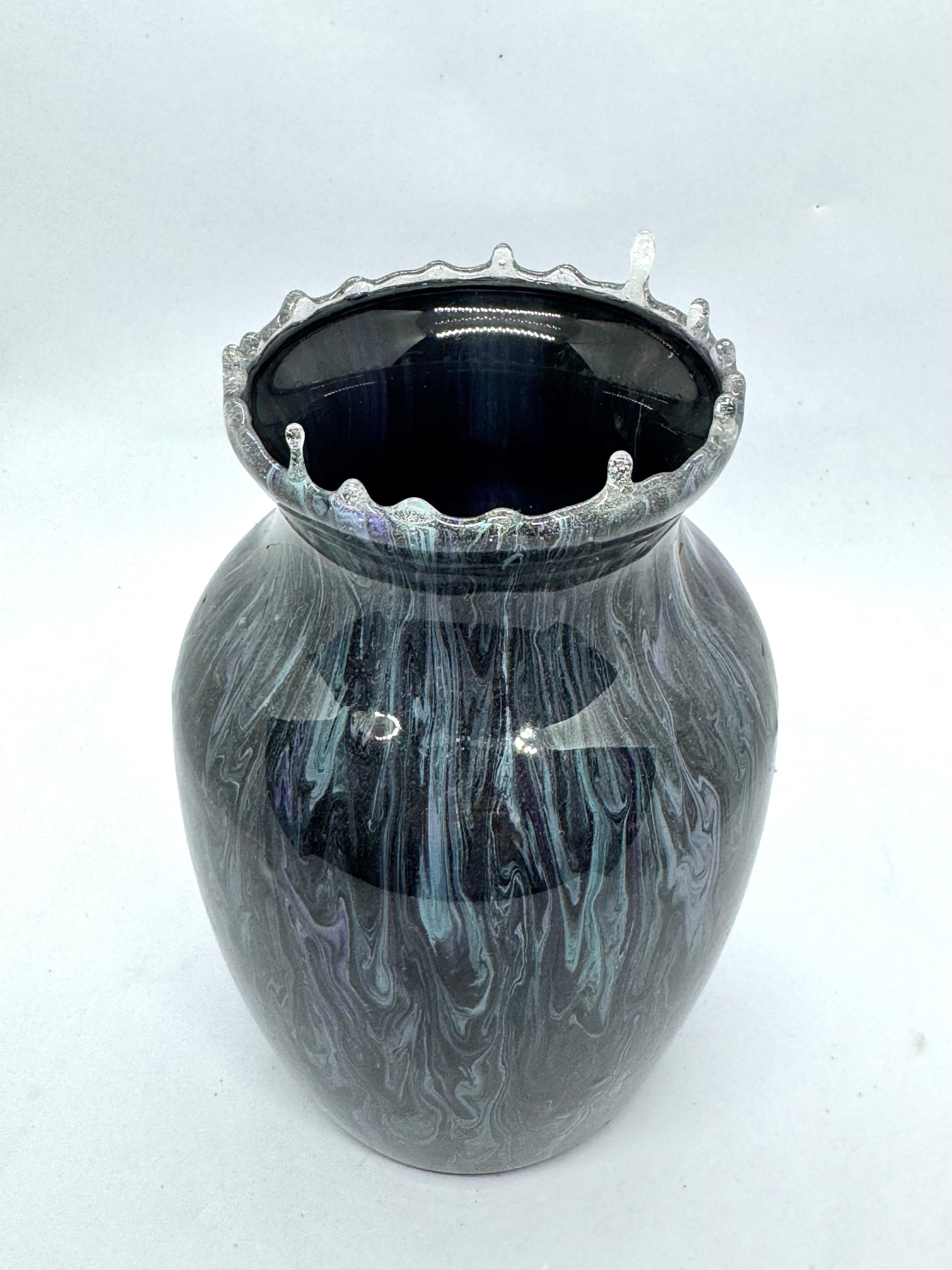 Midnight Void Resin Vase (Smoke + Violet Chaos Drip Rim)