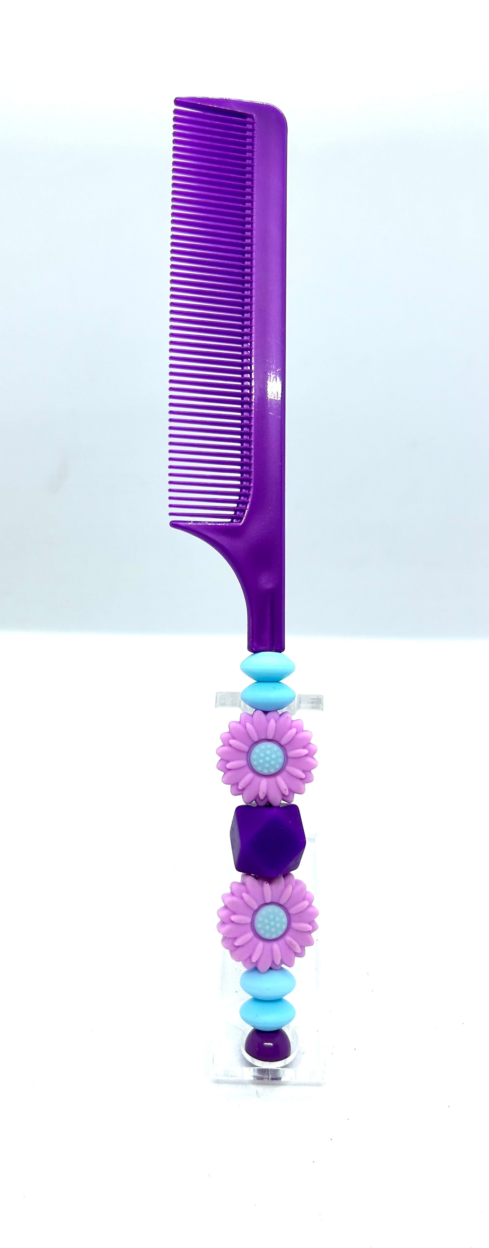 Enhance your look with our Purple Flower Comb! Made with beautiful flower beaded design and soft silicone beads, this comb adds a touch of elegance and style to any hairstyle. Perfect for everyday use or special occasions. Elevate your hair game with our Purple Flower Comb!