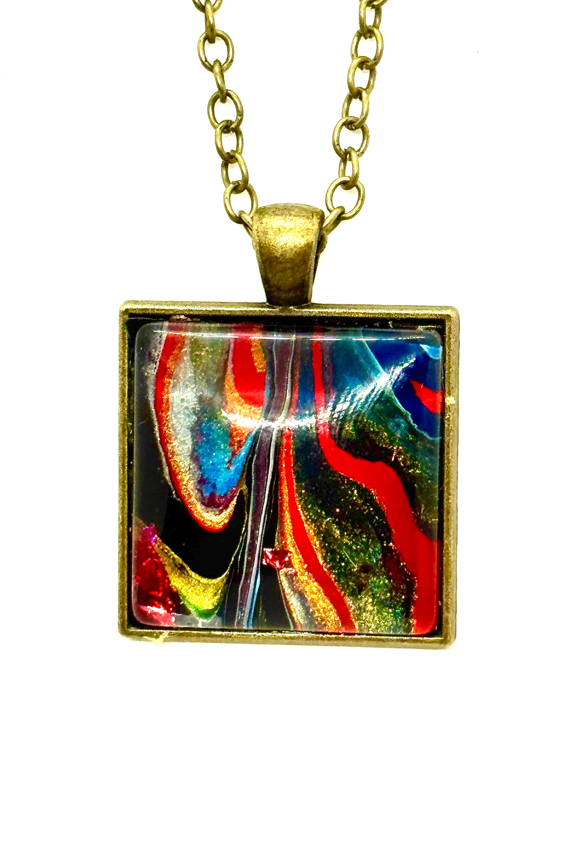 Square Paint Pour Necklace #1