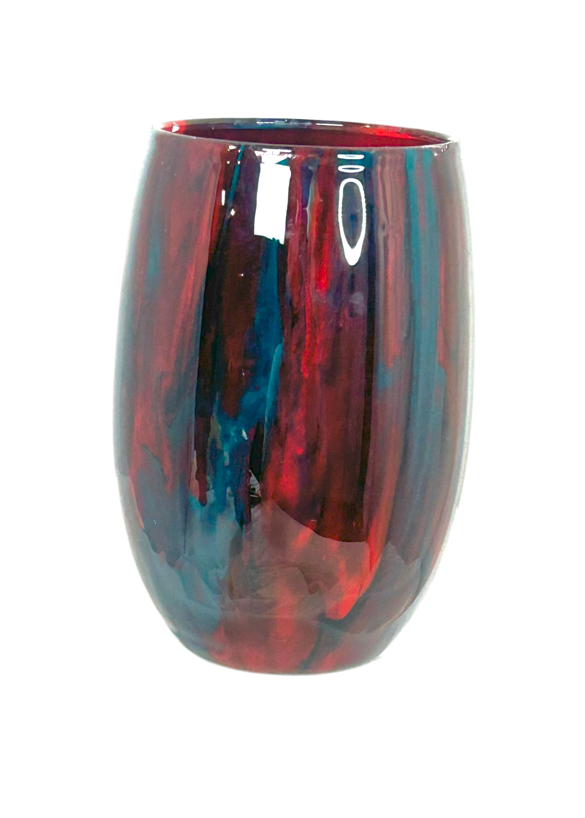 Indulge in your favorite vino with our stemless wine glass, handcrafted with a unique red and blue design and sealed with food safe epoxy resin for lasting quality. Elevate your drinking experience and make a statement with this one-of-a-kind glass. Cheers to style and functionality!