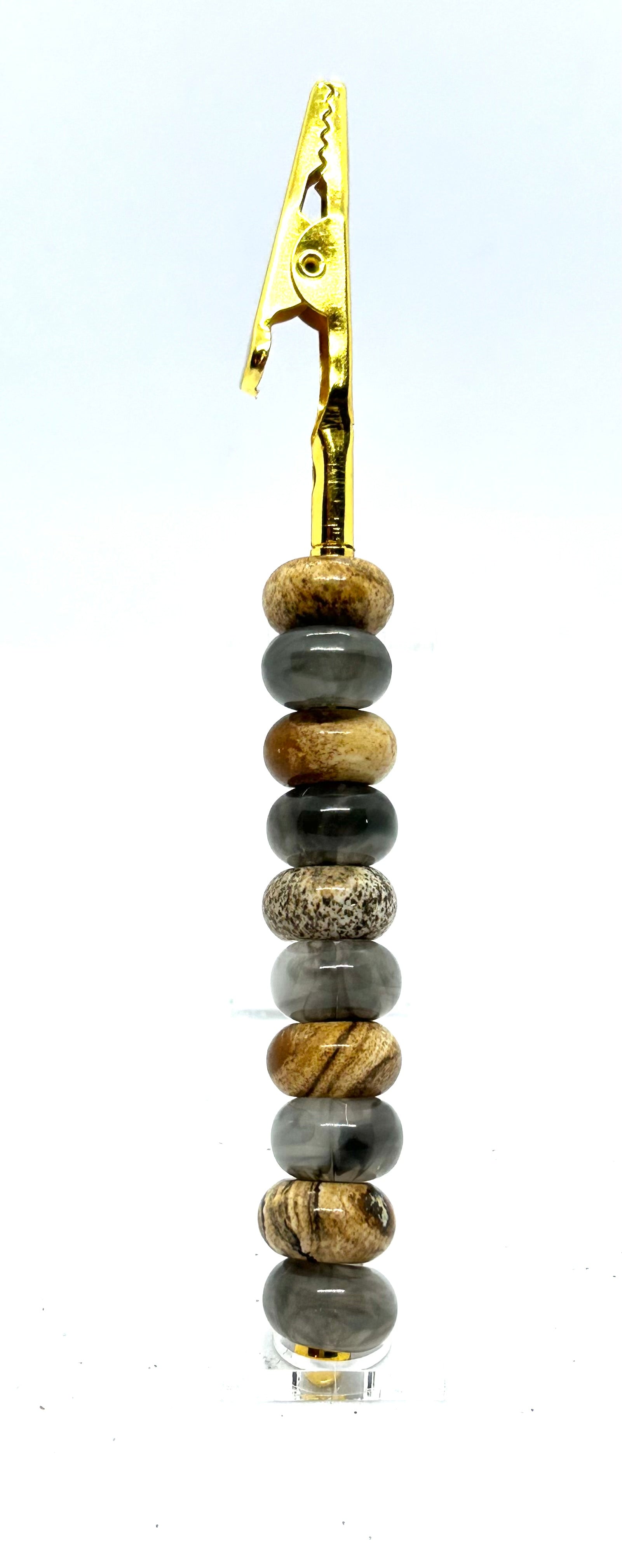 Experience elevated smoking with the Stone Beaded 420 Solution! This elegant gold metal roach clip is adorned with beautiful stone beads, adding a touch of sophistication to your smoking experience. Say goodbye to messy joints and enjoy a smooth smoke every time. Elevate your smoking game with the Stone Beaded 420 Solution.