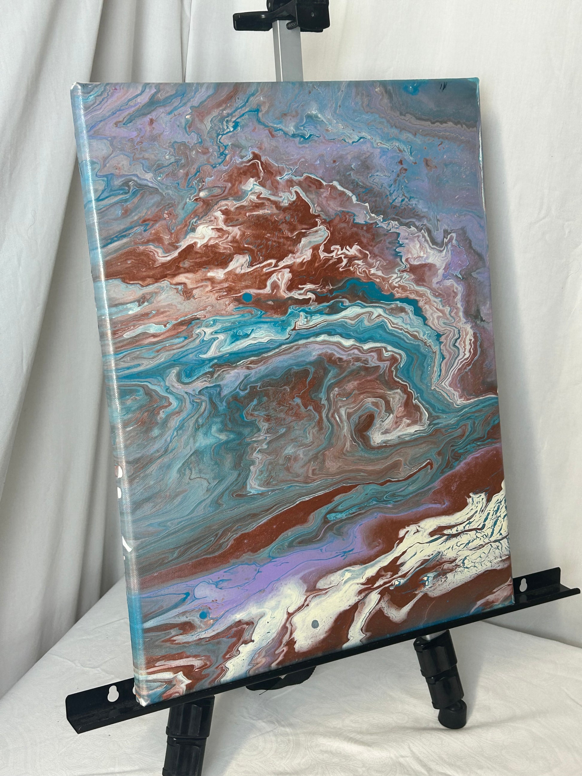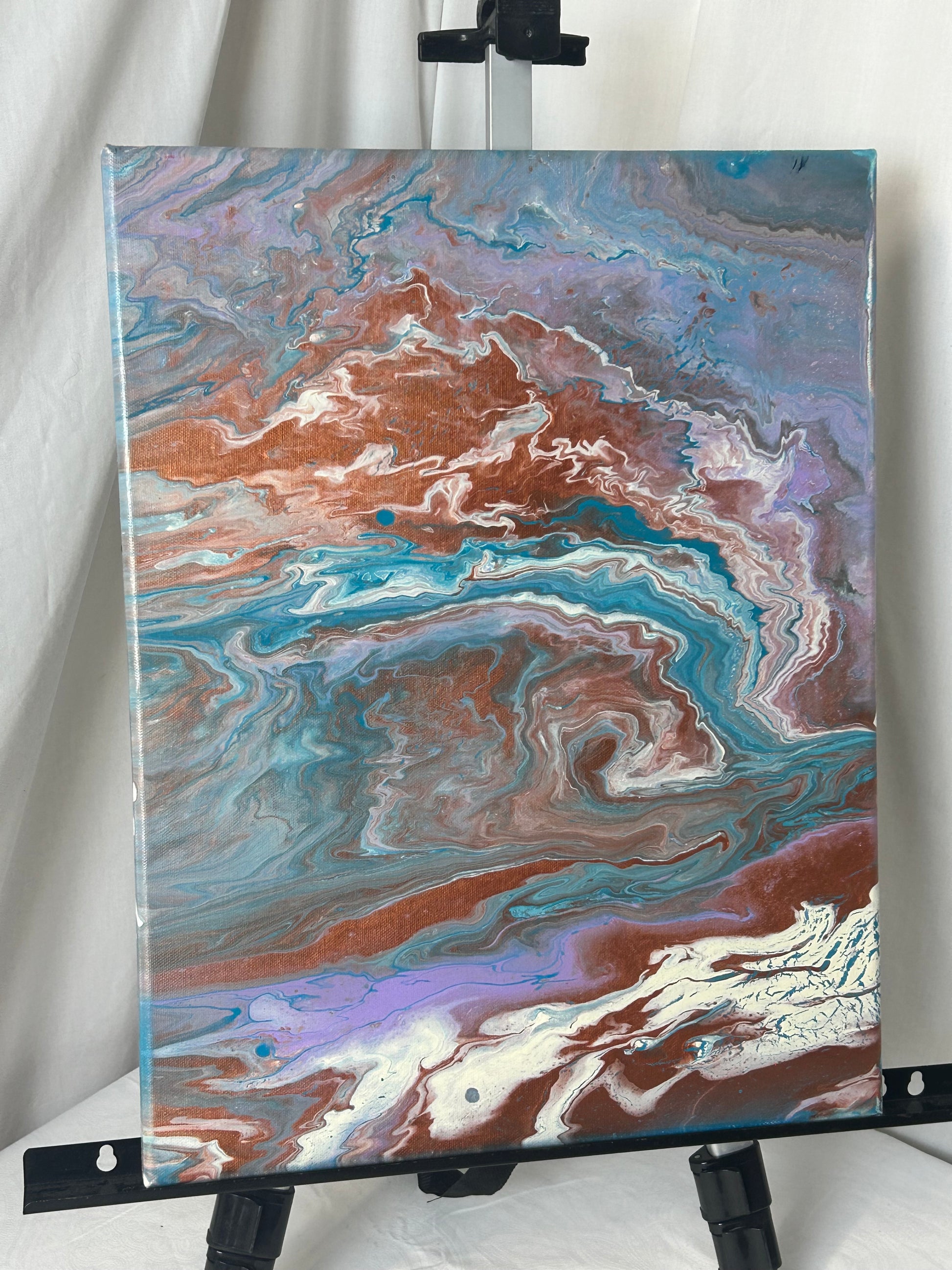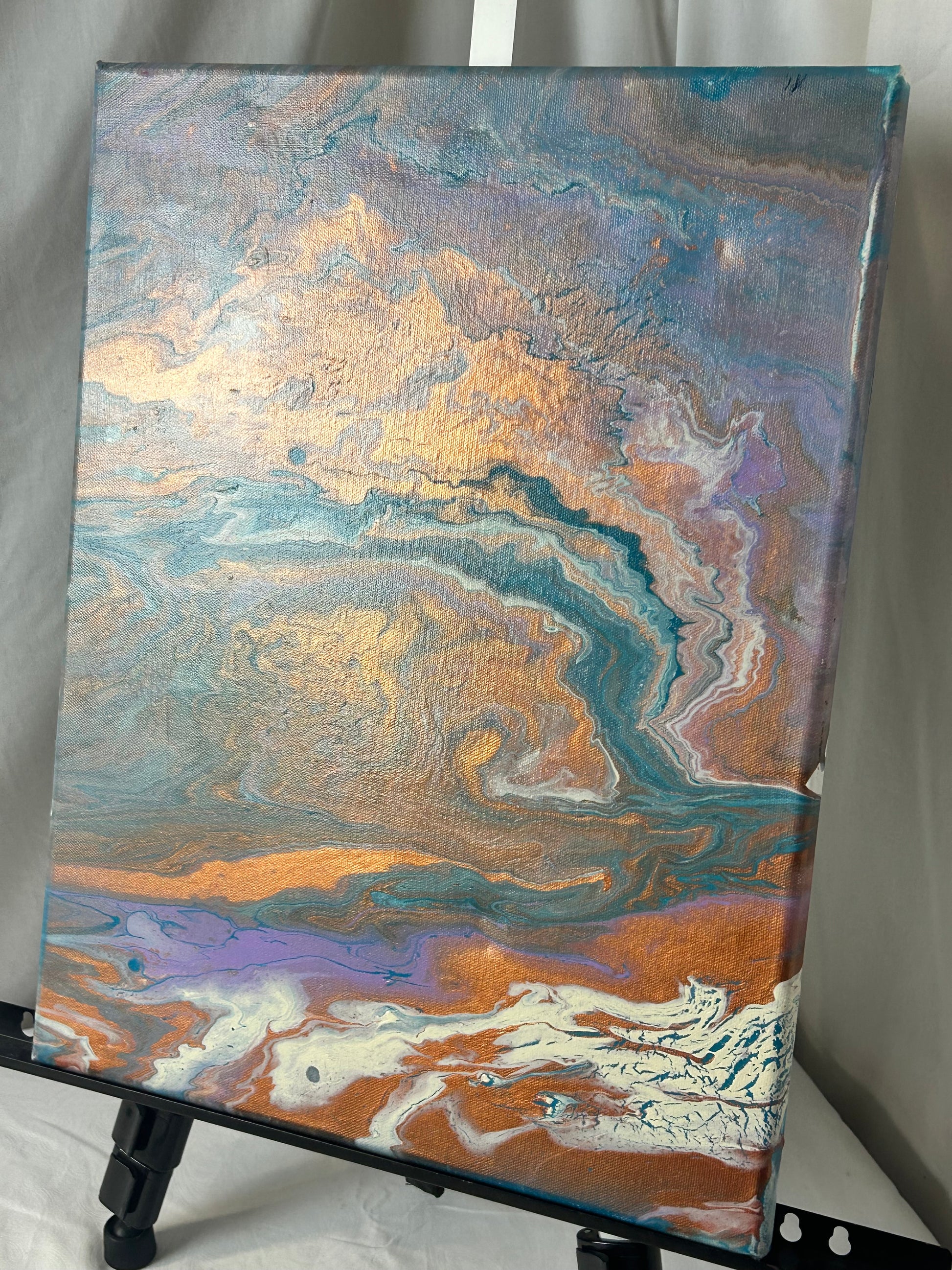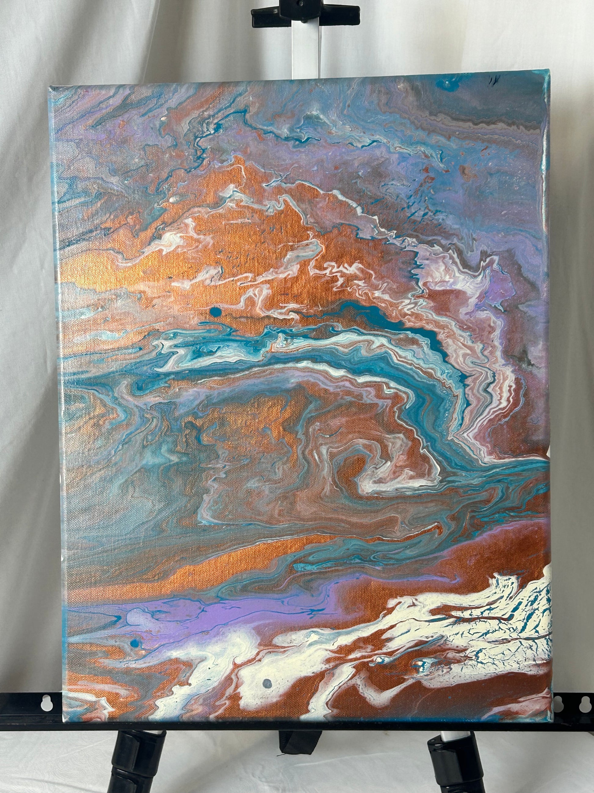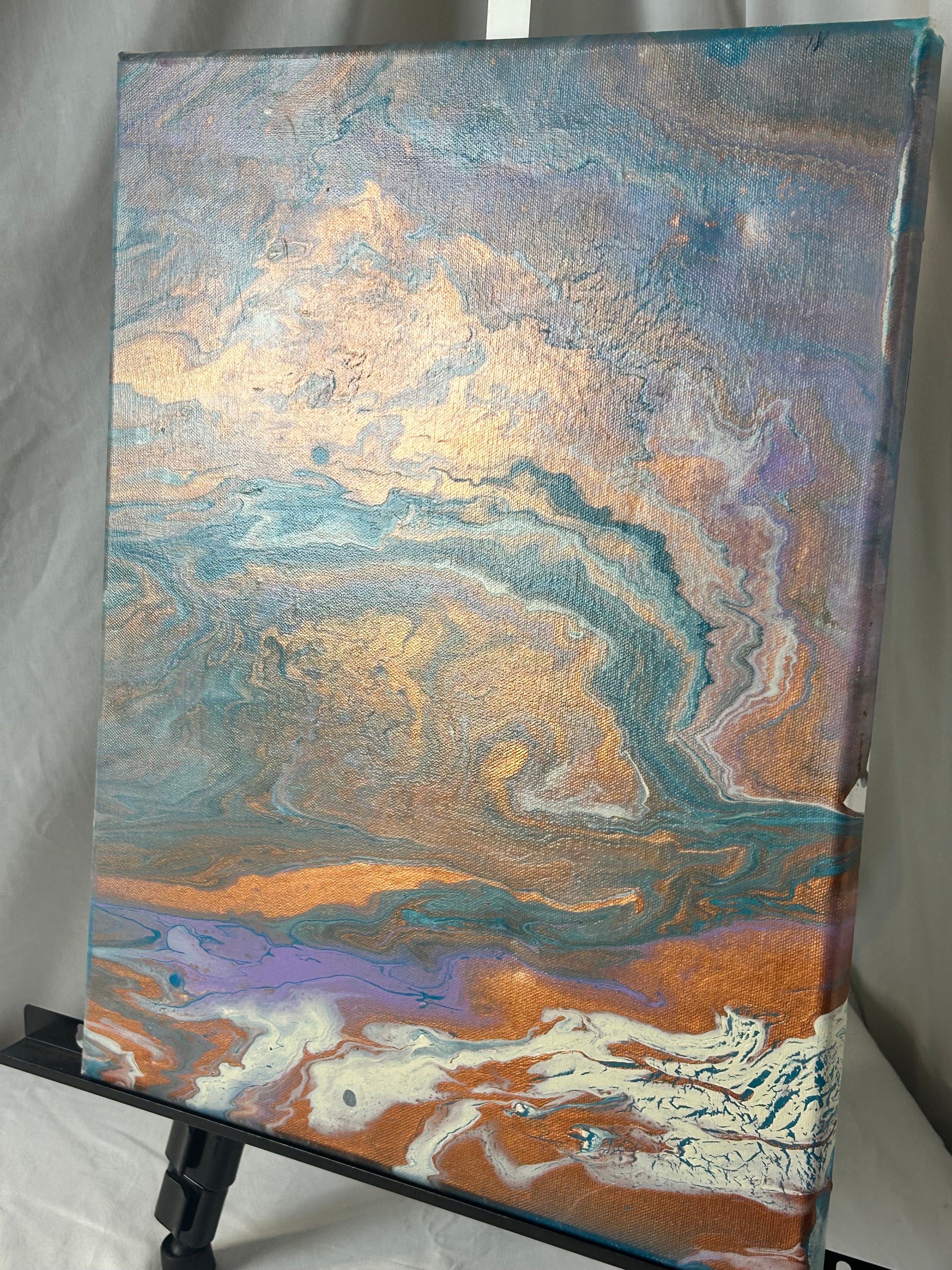 Experience the beauty and tranquility of a Sunset Between Islands with this stunning 14x18" acrylic painting. Let the vibrant colors and intricate brushstrokes transport you to a peaceful and picturesque oasis. Perfect for adding a touch of serenity to any room.