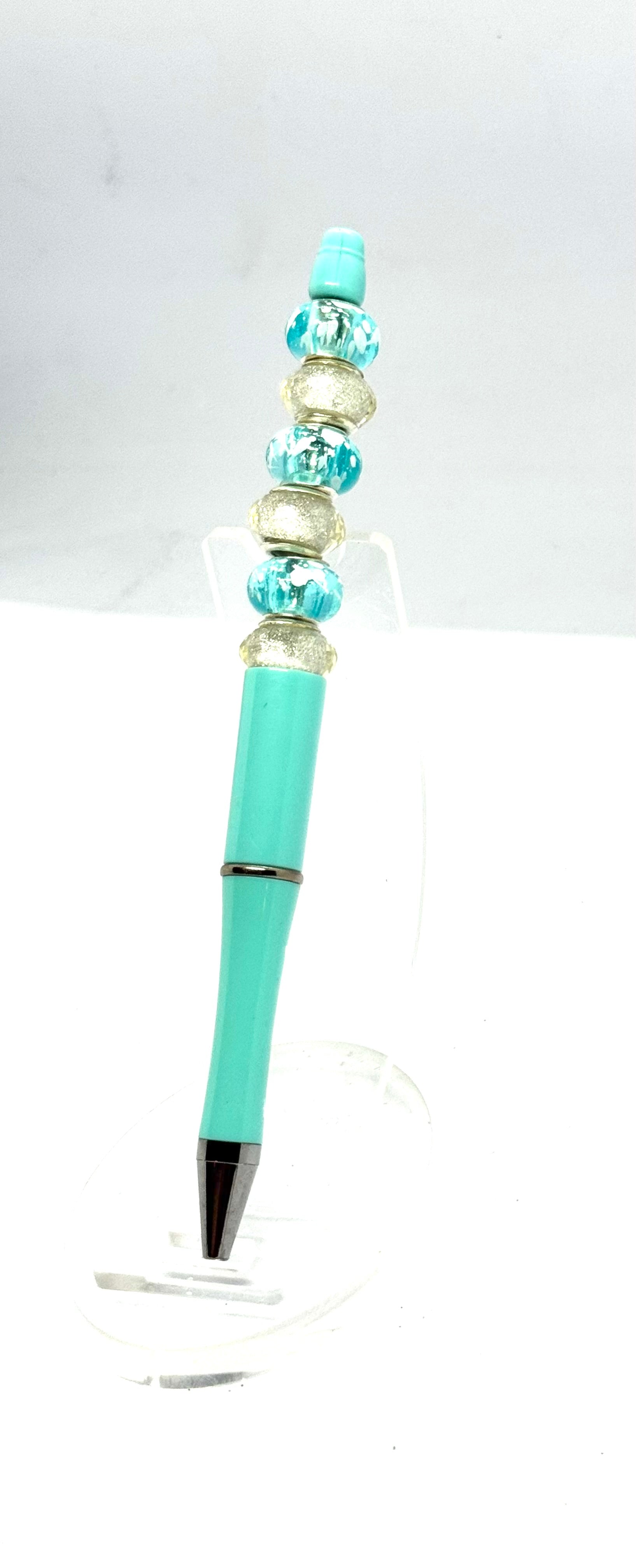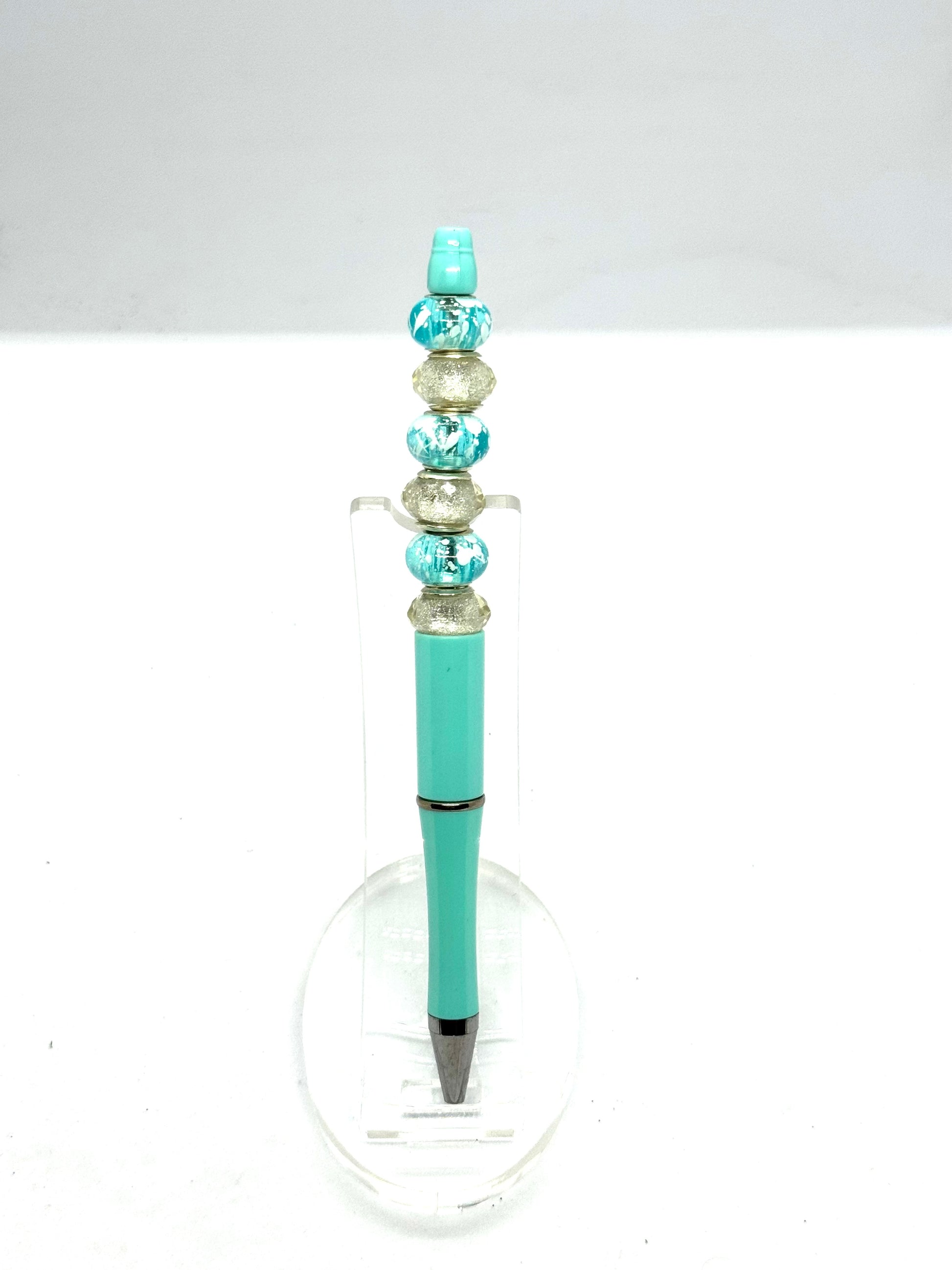 Indulge in the luxurious and stylish Turquoise Pen. Crafted with stunning turquoise and silver glitter acrylic beads, this pen is both functional and fashionable. Perfect for adding a touch of elegance to your everyday writing experience. Elevate your style with the Turquoise Pen today!