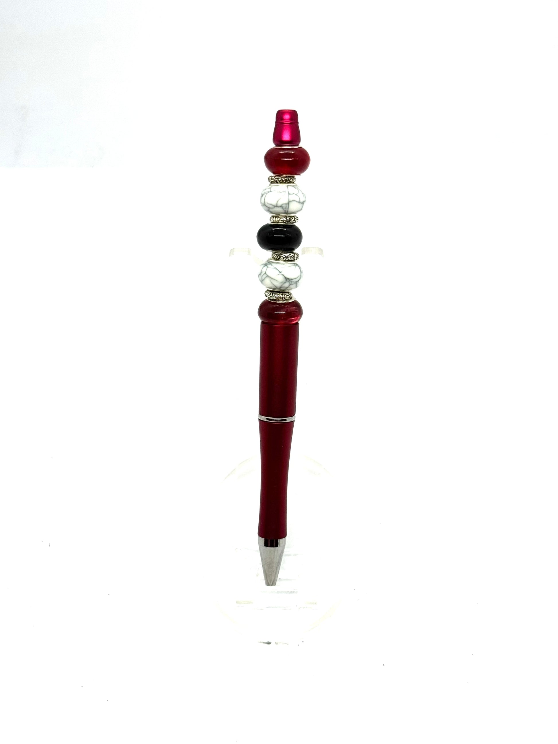 Experience the elegance and sophistication of our Red Beaded Pen. The vibrant red pen is adorned with stunning red and black marbled acrylic beads, adding a touch of luxury to your writing experience. Stand out from the crowd with this unique and eye-catching pen. Perfect for the writer who wants to make a statement!