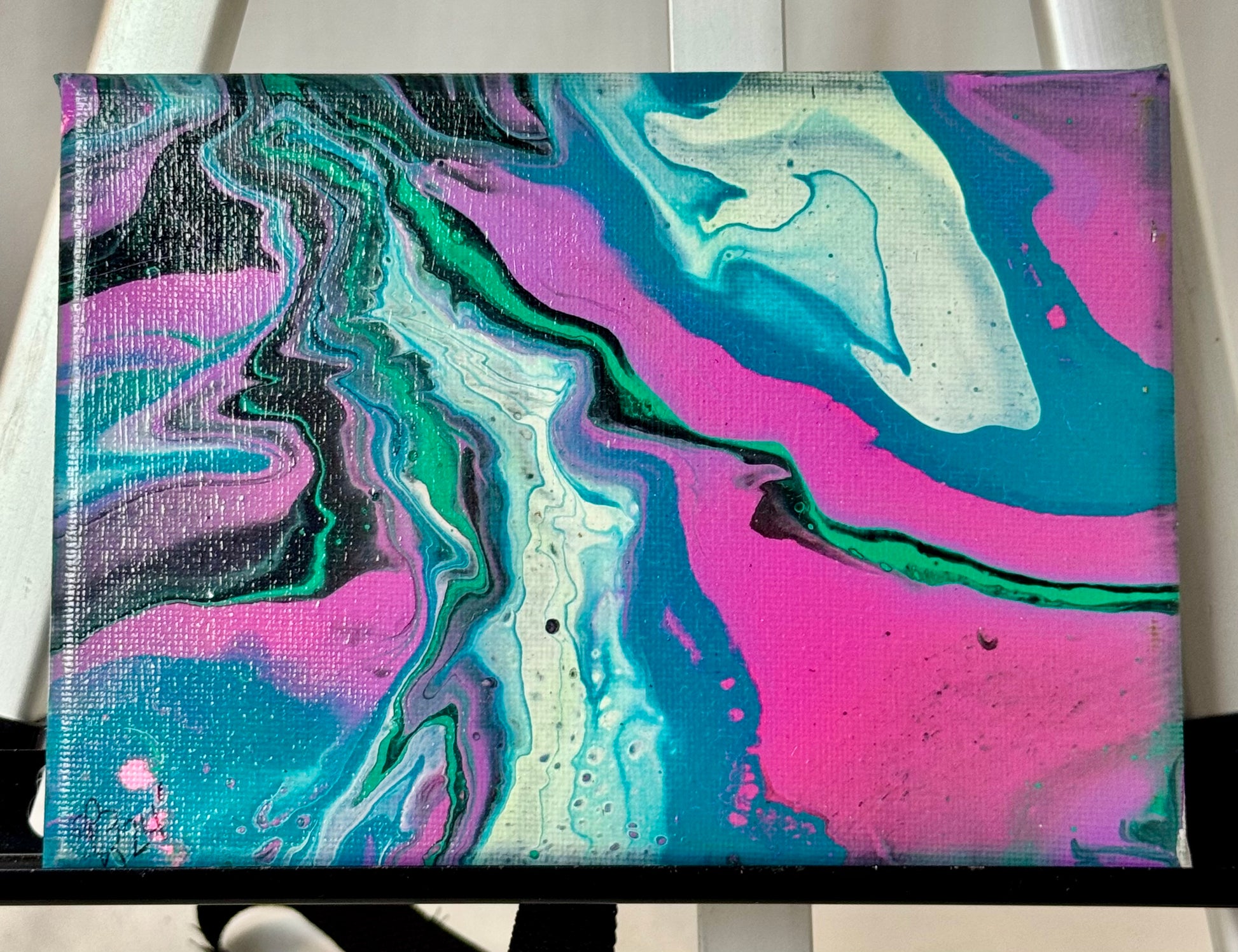 Create a stunning masterpiece with our Waterfall paint pour on a 5x7" canvas! Experience the soothing flow of colors as they mix and mingle to reveal a unique and captivating image. Perfect for adding a touch of beauty to any room or as a thoughtful gift for an art lover.