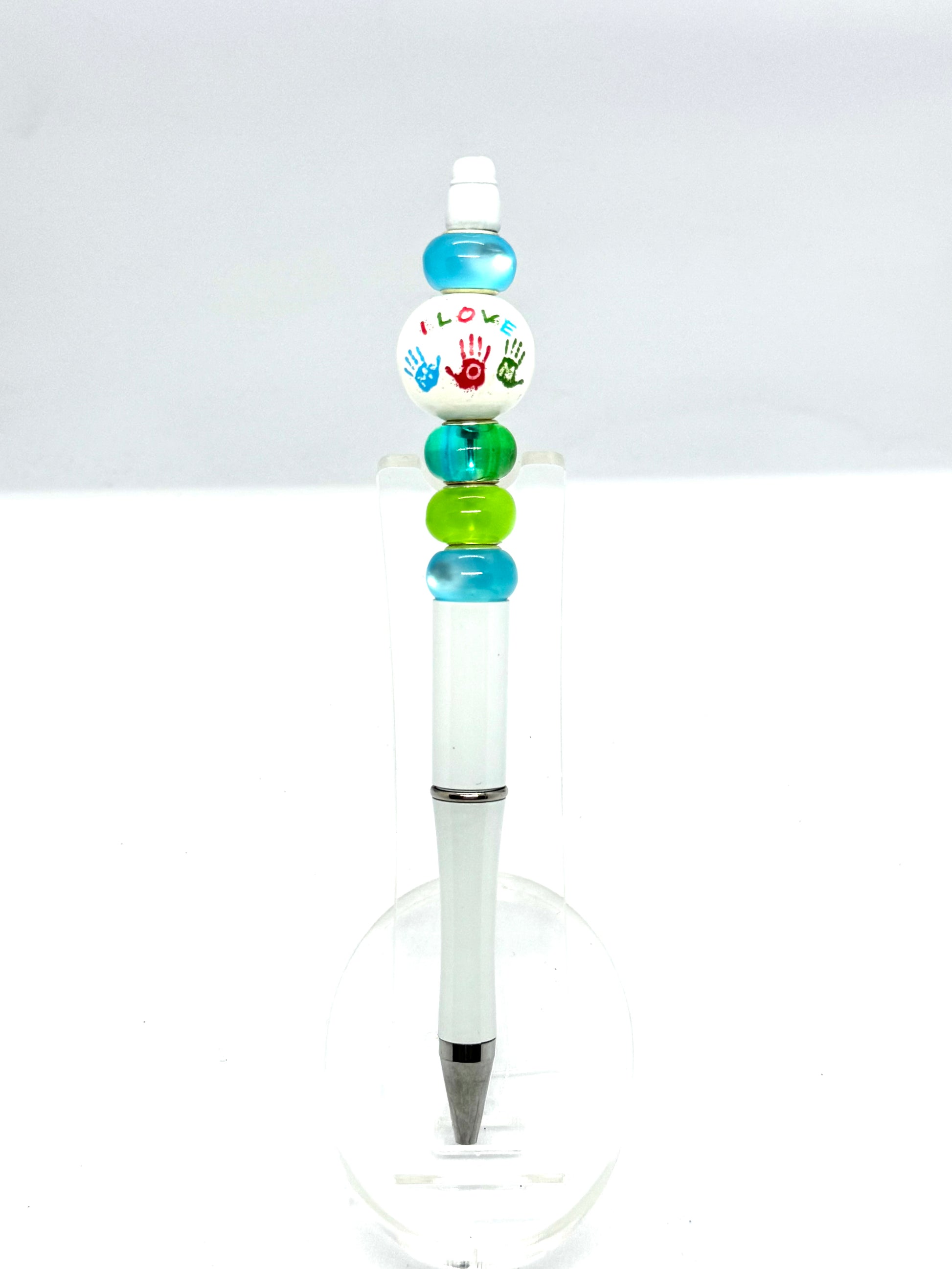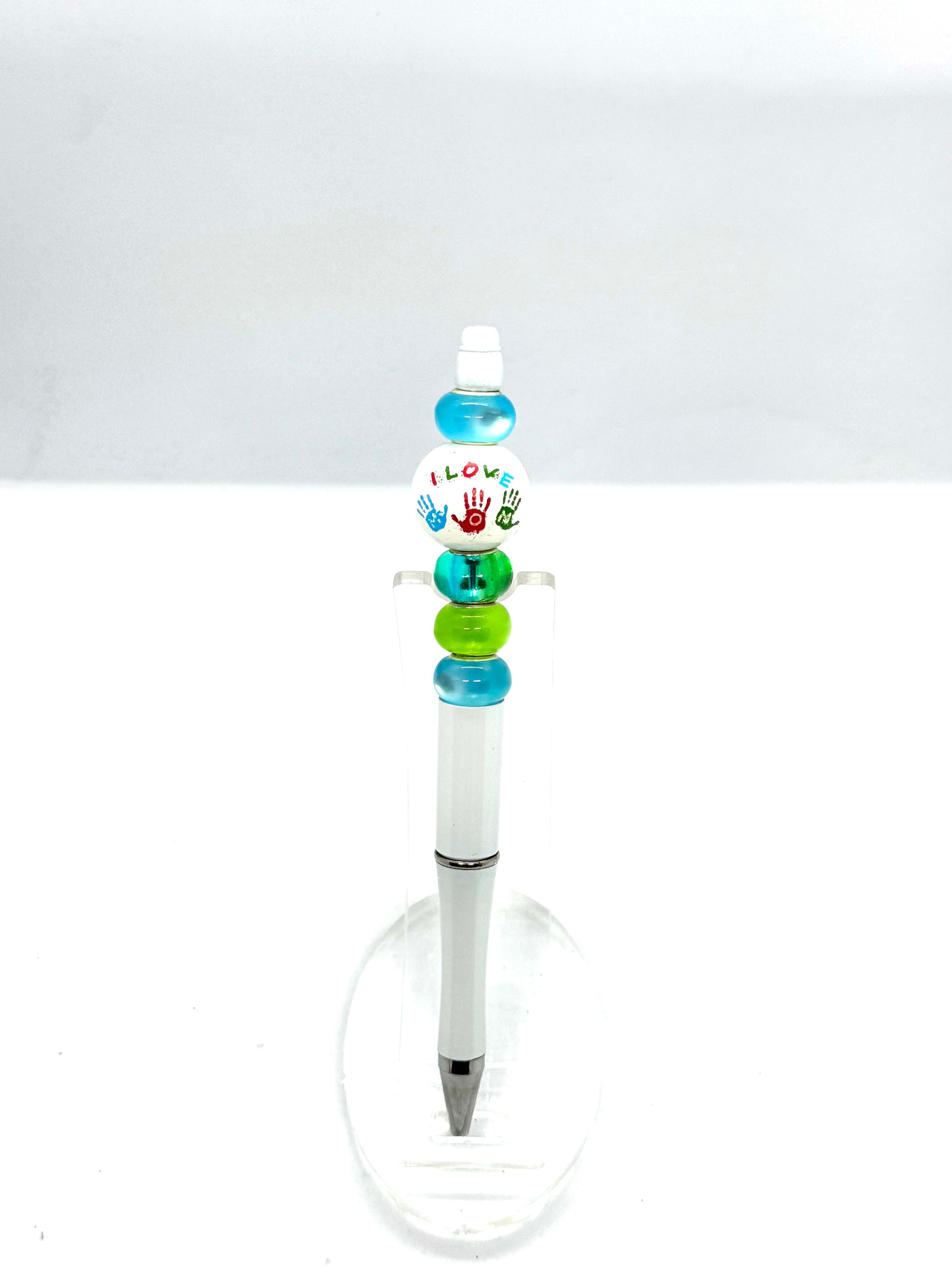 White “I Love Mom” Beaded Pen