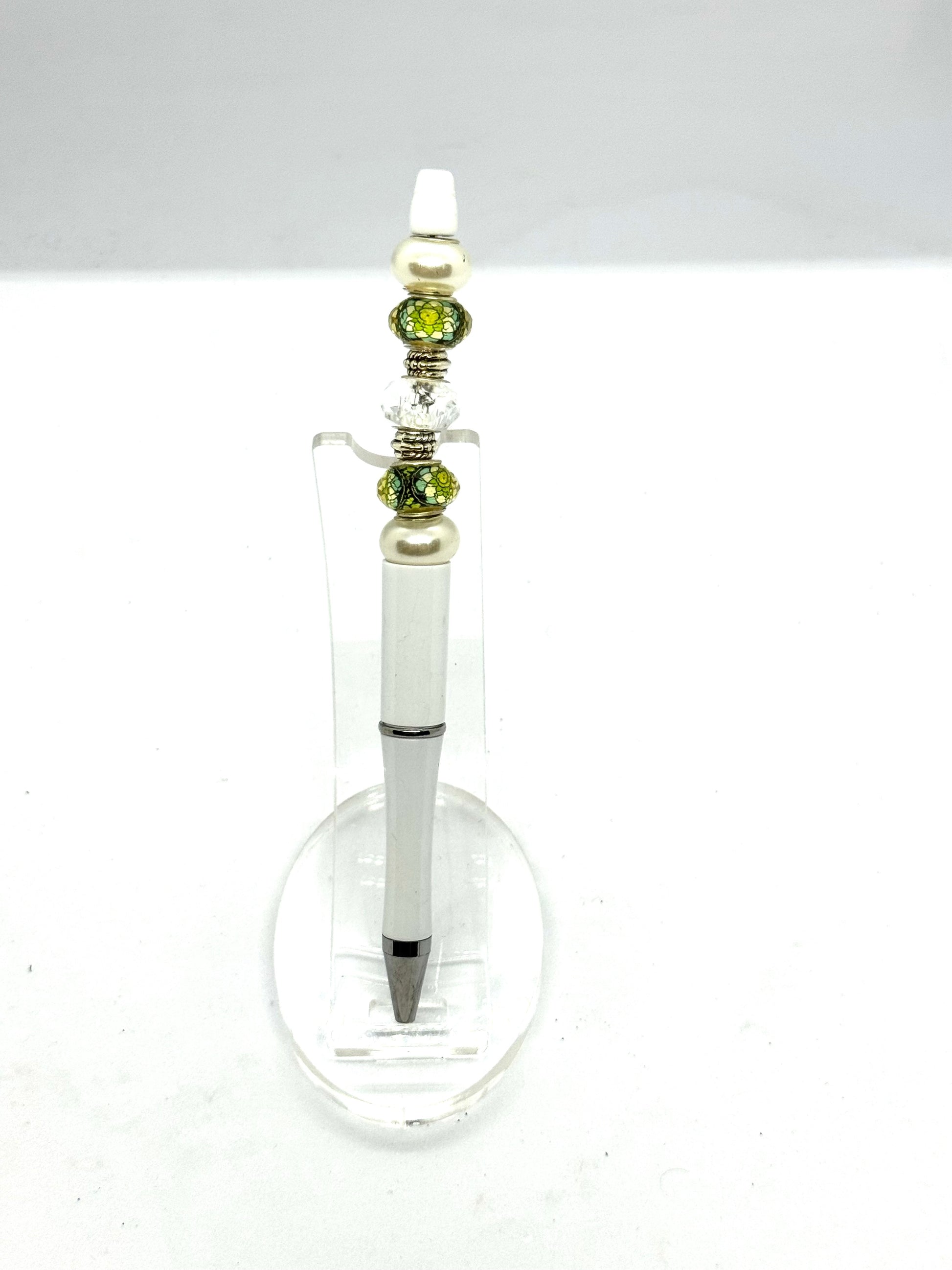 Elevate your writing with our White Ink Pen! The smooth white ink flows effortlessly on paper, making your words stand out. Adorned with acrylic beads, this pen adds a touch of elegance to your desk. Experience the joy of writing in white with our White Ink Pen.