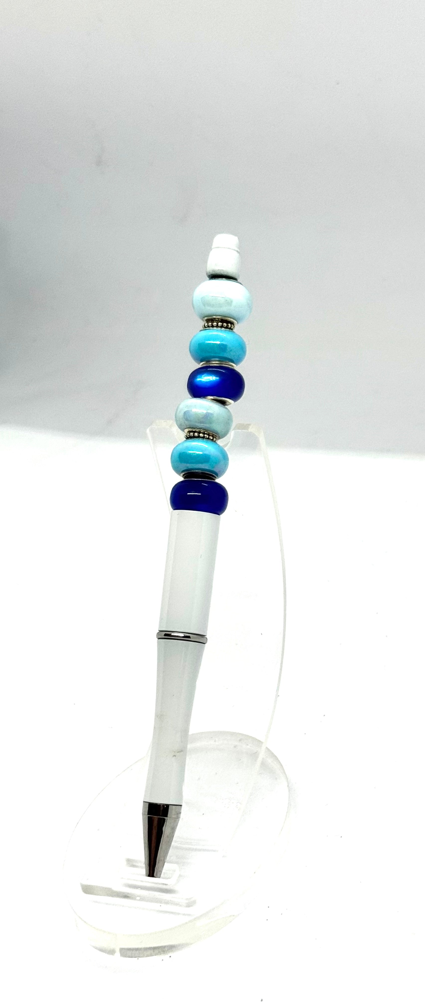 Upgrade your writing experience with our White Pen adorned with beautiful blue acrylic beads. The sleek design and smooth ink flow will make you the envy of the office. Add a touch of style to your work and leave a lasting impression.